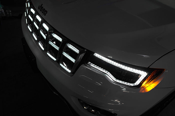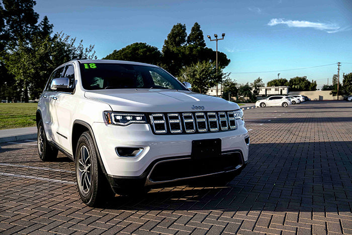 This grille (frame) was designed specifically for the 2014–2021 Jeep Grand Cherokee, integrating LED daytime running lights and marker lights to enhance the front-end visibility without being ostentatious.